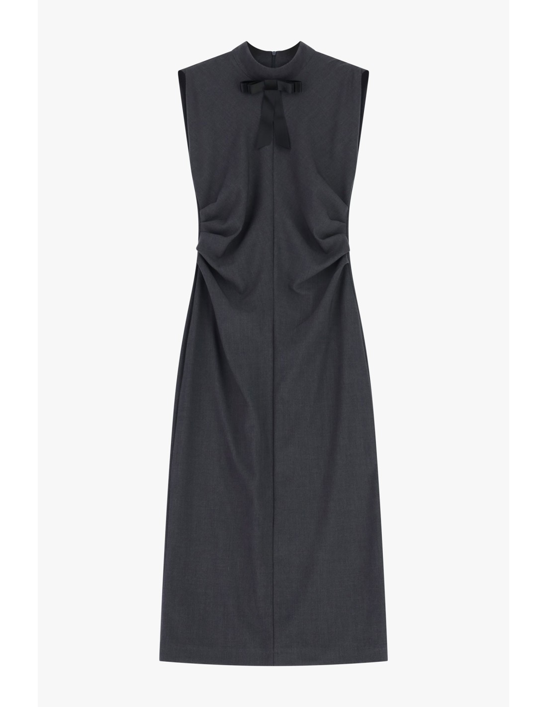 Vestido midi sem mangas com laço