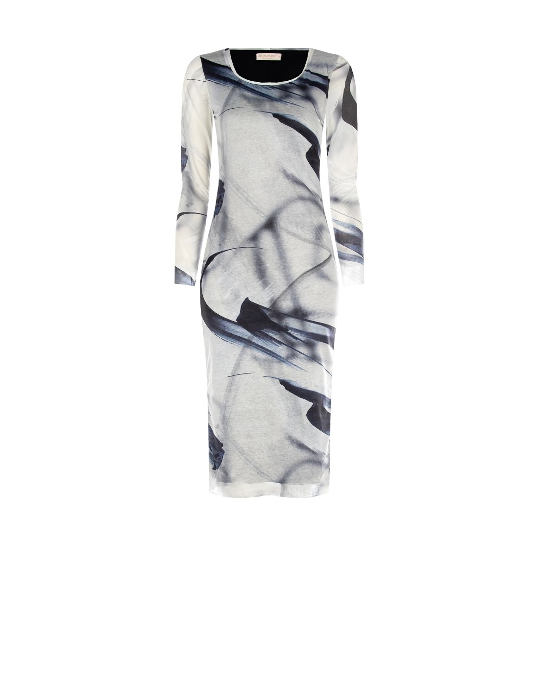 Rinascimento apresenta um midi envolvente com um corte justo que esculpe a silhueta com conforto. Confeccionado em malha fluida com efeito brilhante, desliza sobre o corpo sem marcar. Decote redondo e mangas compridas, estampa artística all-over. Perfeito para o escritório com blazer, sedutor à noite com sandálias.