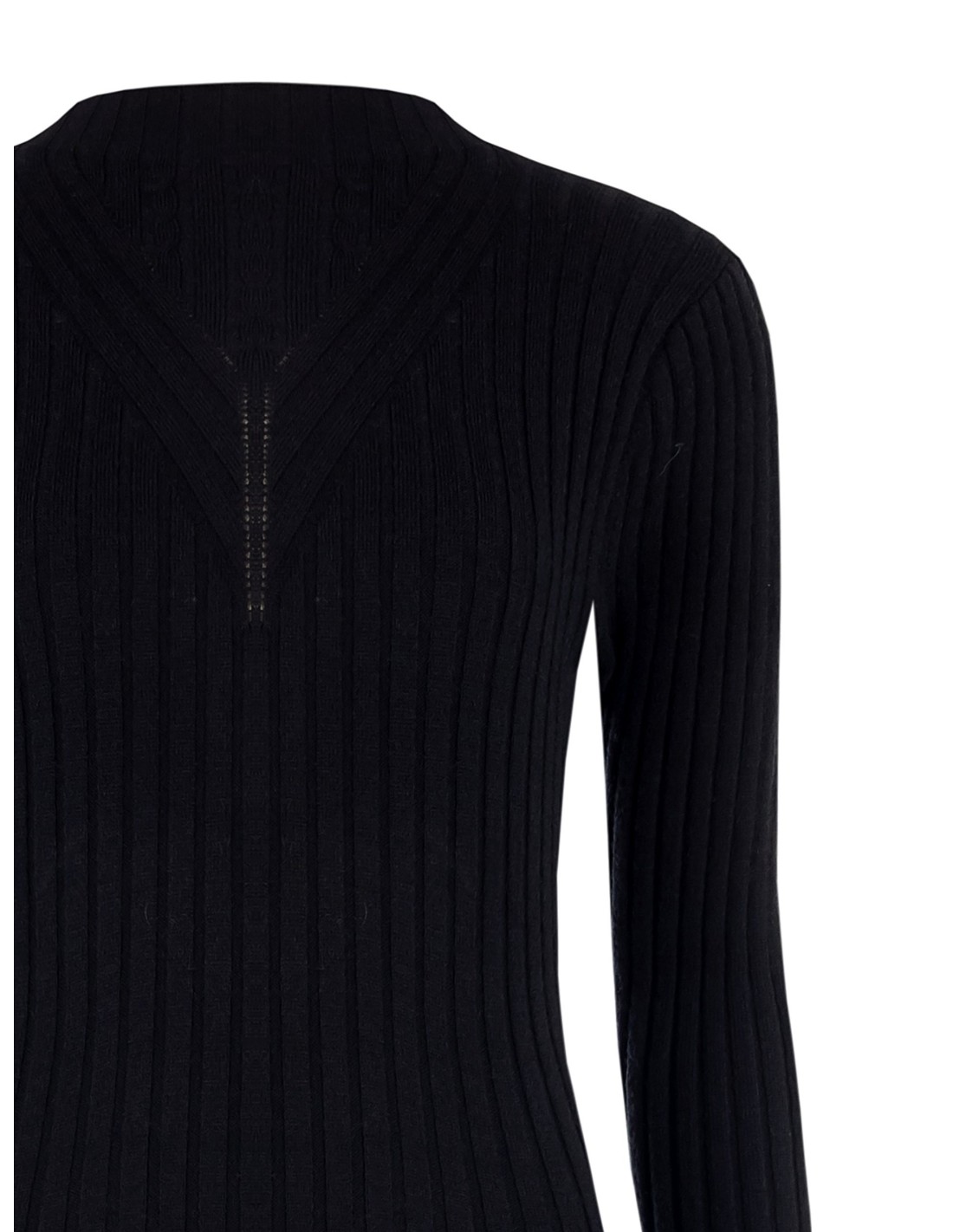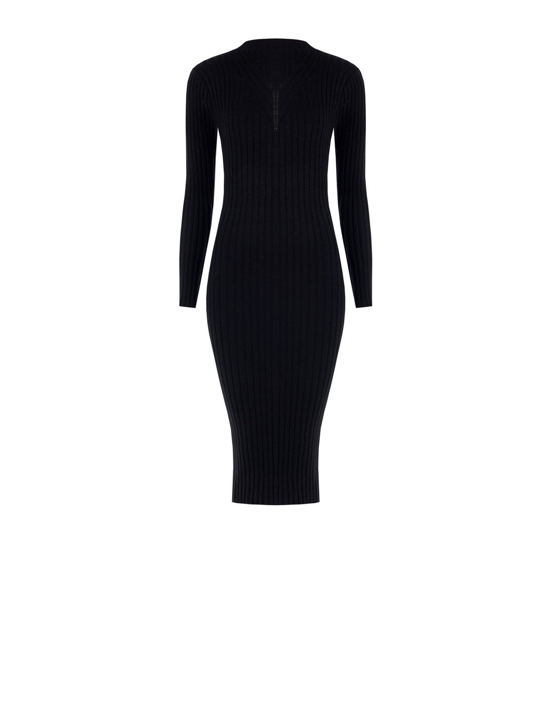 Assinado Rinascimento, silhueta midi justa que segue as formas com conforto. Malha de canelado largo, macia e elástica para um ajuste envolvente. Decote em V gráfico e pequeno logótipo na parte de trás. Fácil de conjugar com blazer ou botas: ideal para o escritório, perfeito também para after‑work e jantares.