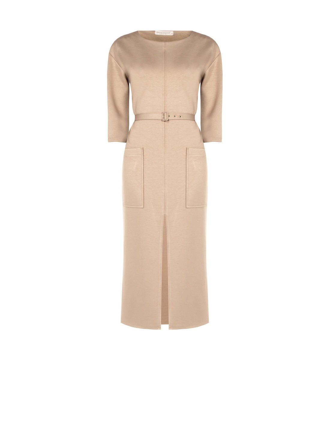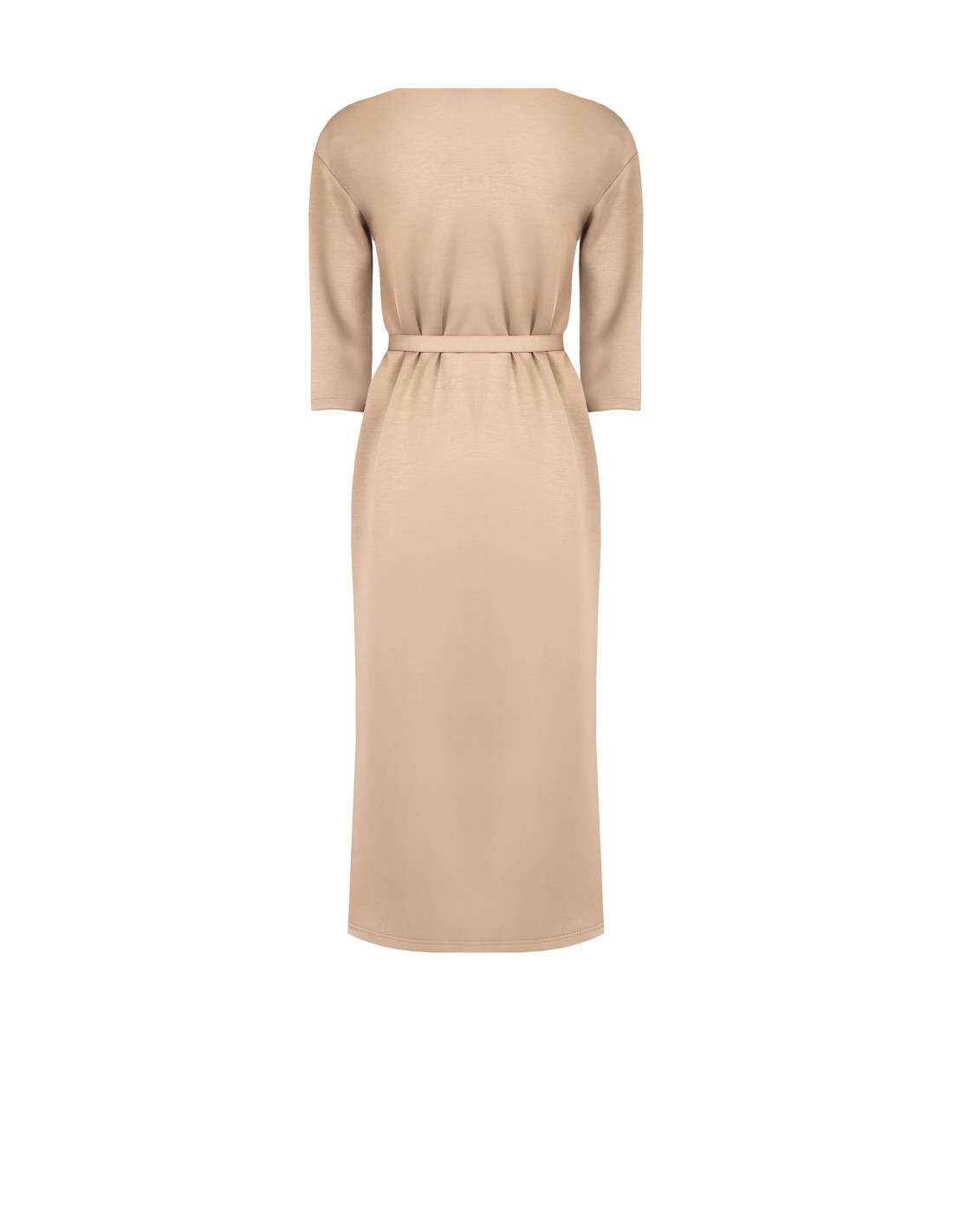 Linha midi de corte regular que valoriza a silhueta com cinto regulável. Tecido macio e fluido com efeito malha, confortável durante todo o dia. Decote redondo, bolsos aplicados e fenda frontal para maior liberdade de movimento. Perfeito para o escritório e para os momentos after‑work com uma mudança de acessórios.