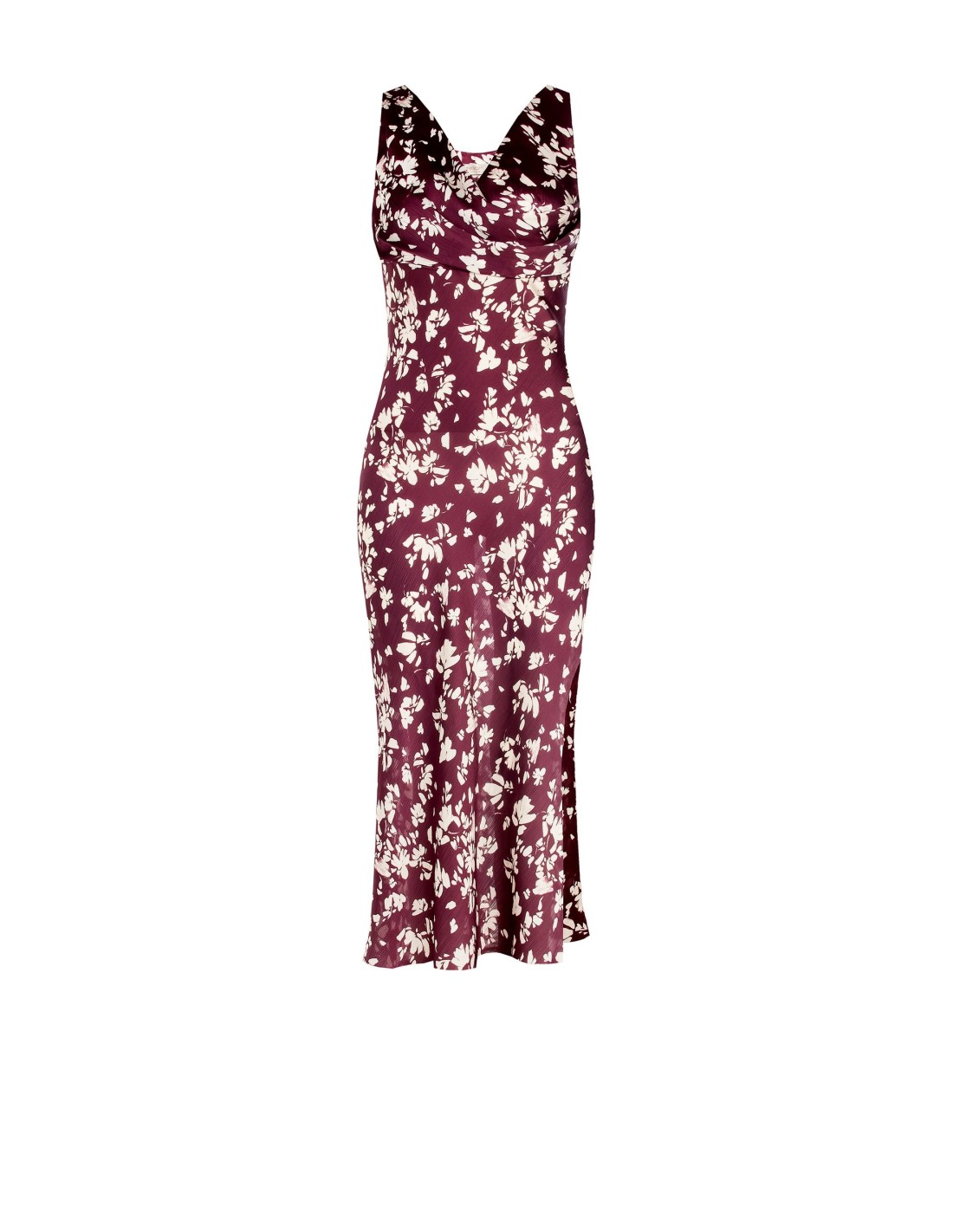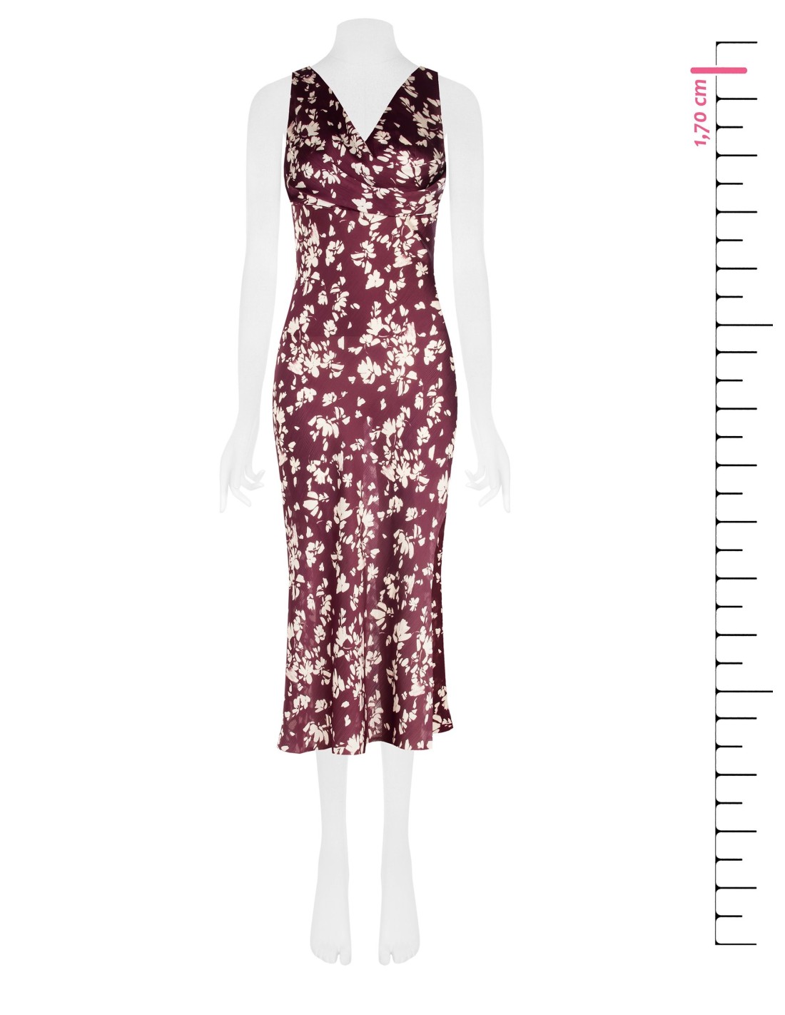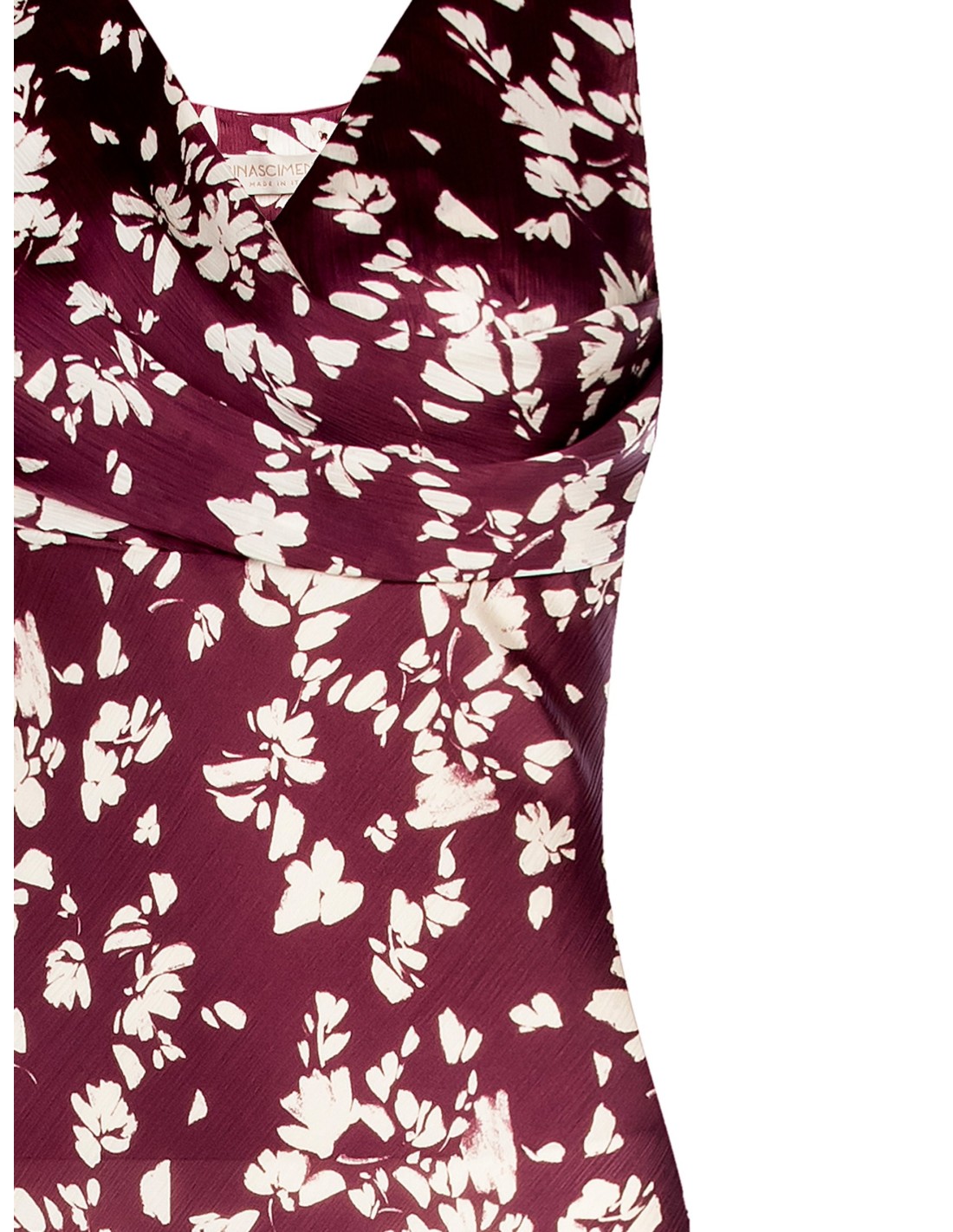 Rinascimento apresenta um vestido midi subtil que favorece a silhueta. Tecido de cetim esvoaçante com estampado floral e ligeiro toque iridescente. Decote em cascata e franzido sob o busto para maior conforto e definição. Perfeito para uma cerimónia, festa ou jantar especial.