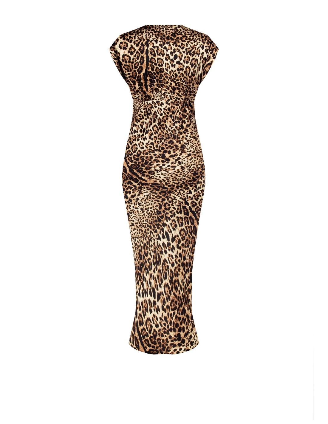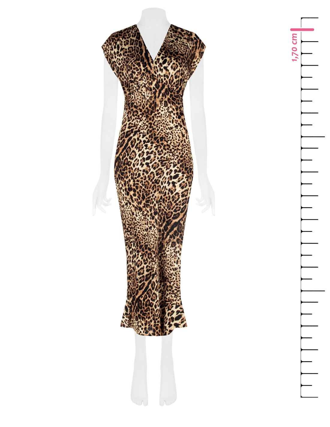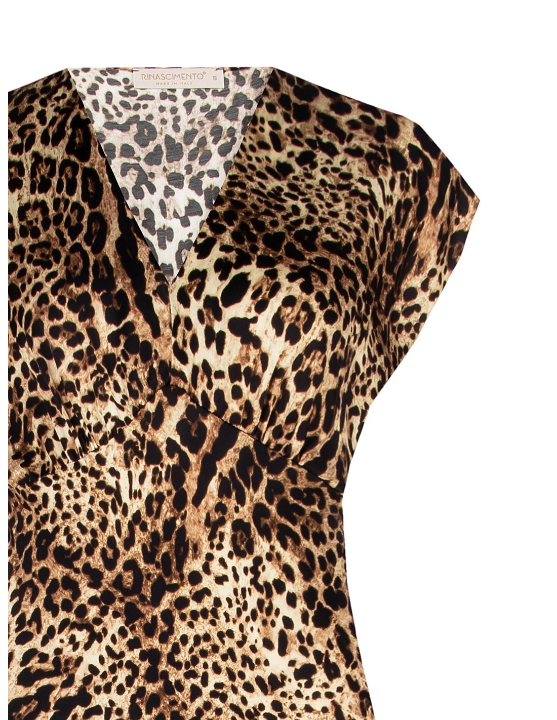 Silhueta de bainha suave que abraça as curvas com conforto. Camisola fluida e ligeiramente elástica, com textura animal. Decote em V cruzado que realça o decote, mangas curtas e parte de baixo alargada que emagrece. Perfeito para aperitivos, festas e jantares, com saltos altos ou sandálias mínimas. Rinascimento.