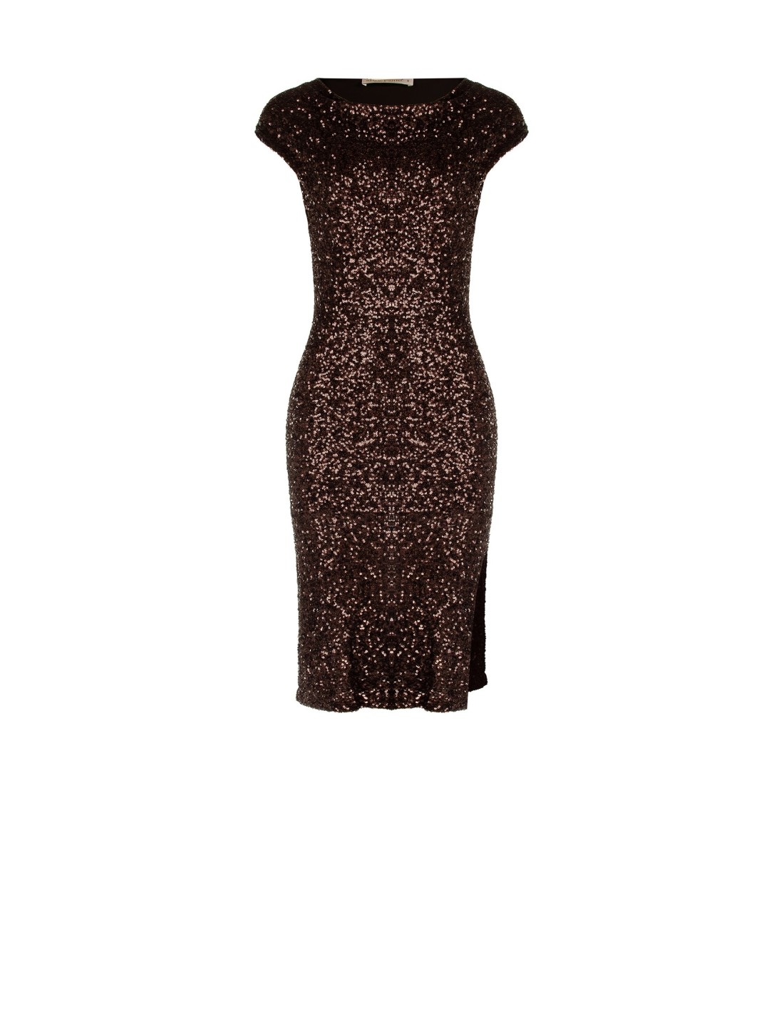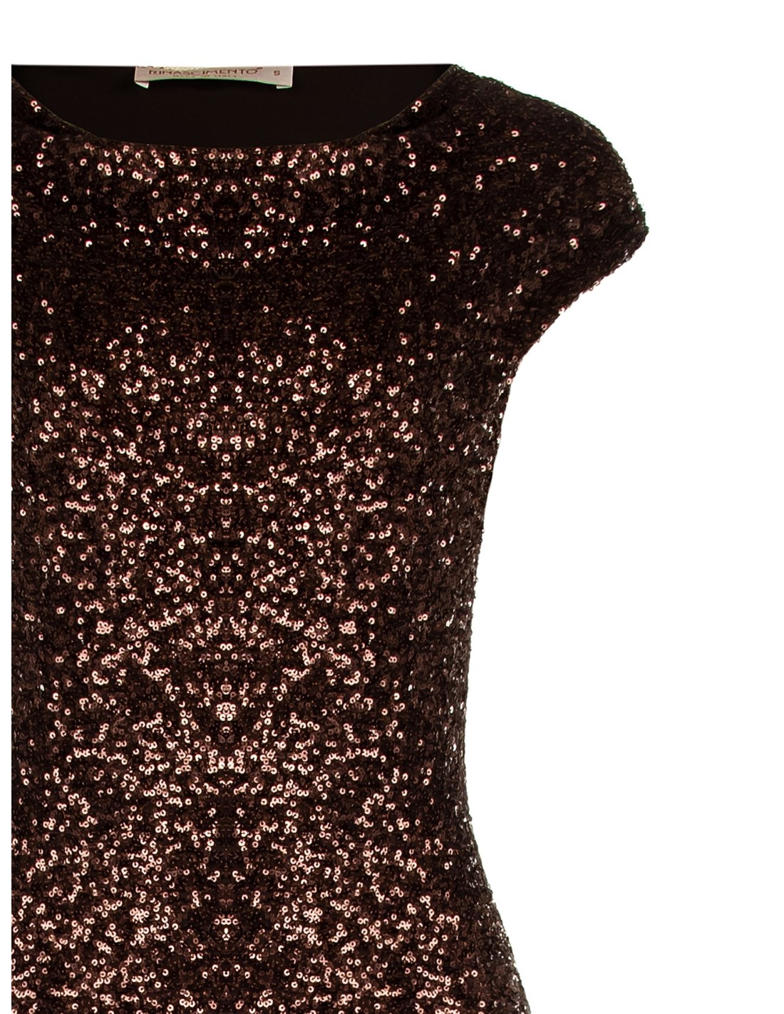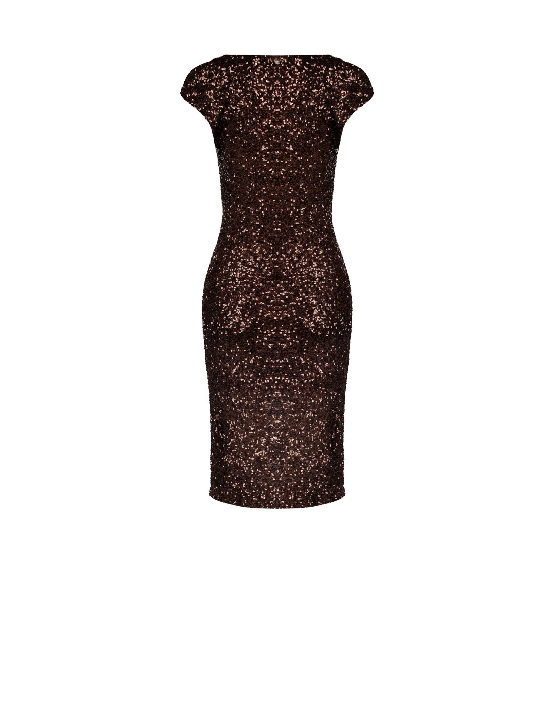 Rinascimento assina um vestido de bainha midi com um corte adelgaçante que esculpe a silhueta com conforto. Malha elástica inteiramente bordada com lantejoulas, forro macio e não transparente. Decote redondo com mangas curtas e fenda lateral para liberdade de movimentos. Perfeito para festas, cocktails e noites especiais.