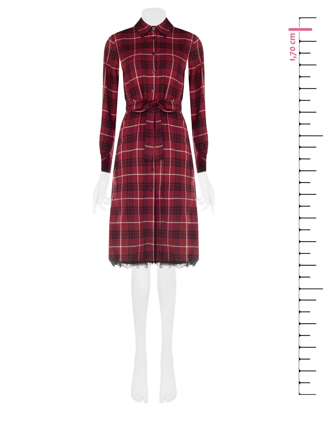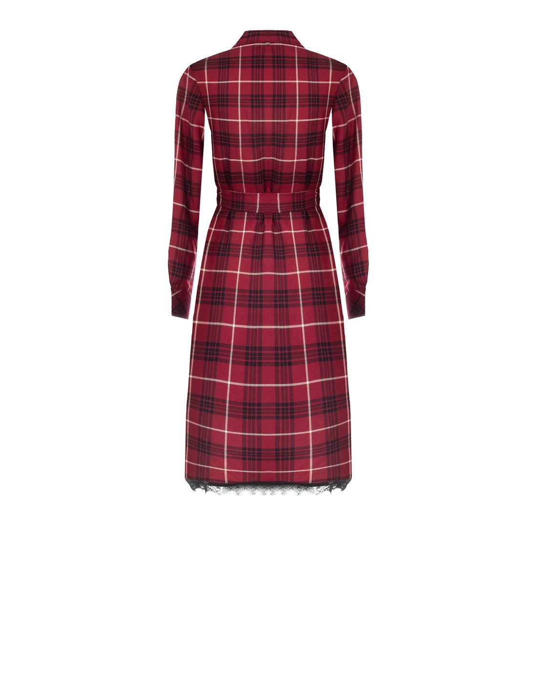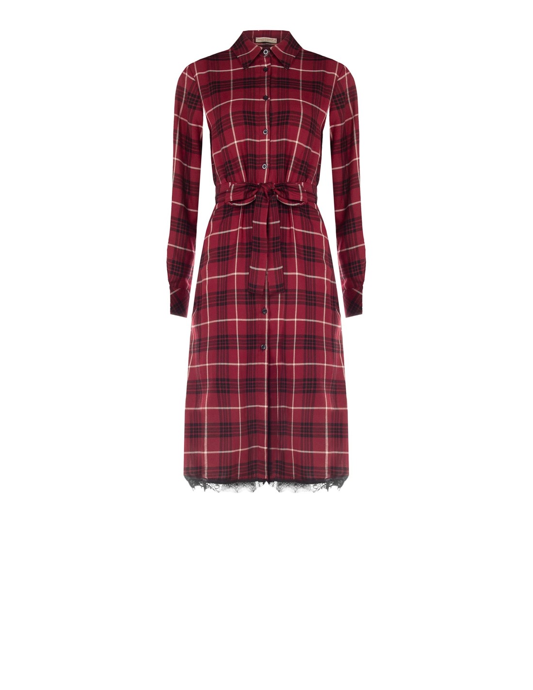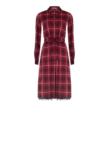 Chemisier midi de corte suave com cinto que define a cintura e realça a silhueta. Tecido xadrez fluido com um toque suave. Pormenores distintivos: botões à frente e bainha com renda. Perfeito do escritório para o aperitivo: confortável para usar todo o dia, elegante com saltos ou anfíbios.