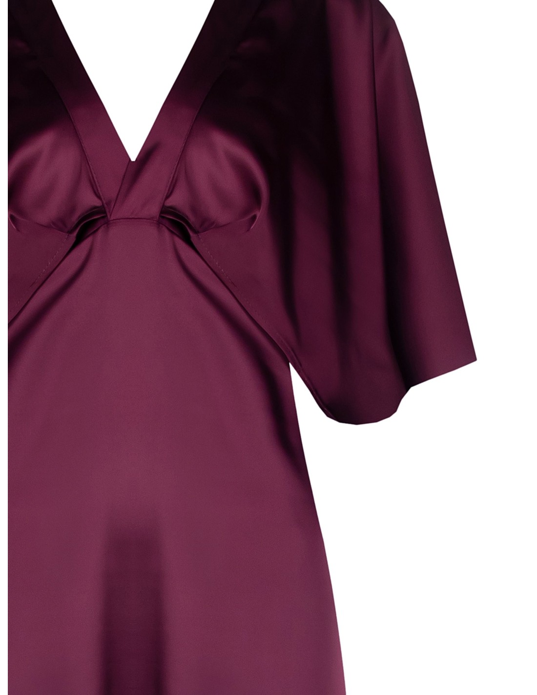 Vestido comprido Rinascimento, de corte justo que adelgaça a silhueta. Cetim fluido e leve, agradável na pele. Decote em V à frente e atrás com pormenor cruzado sob o busto, mangas kimono que cobrem com elegância. Perfeito para cerimónias, festas e jantares especiais: conforto e movimento a cada passo.