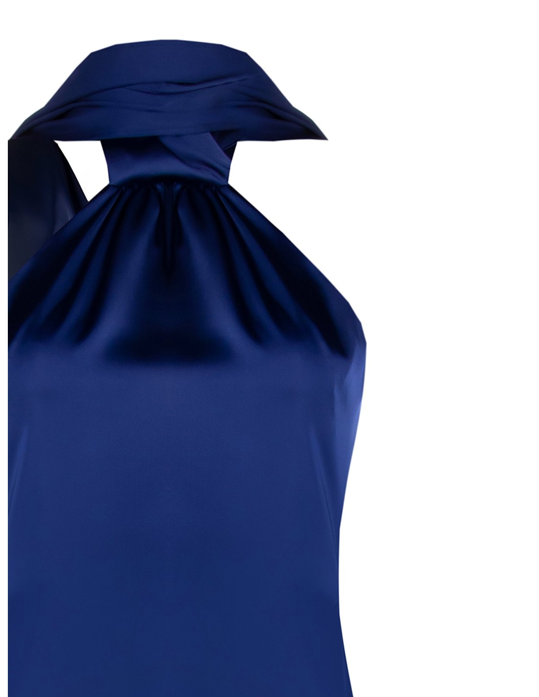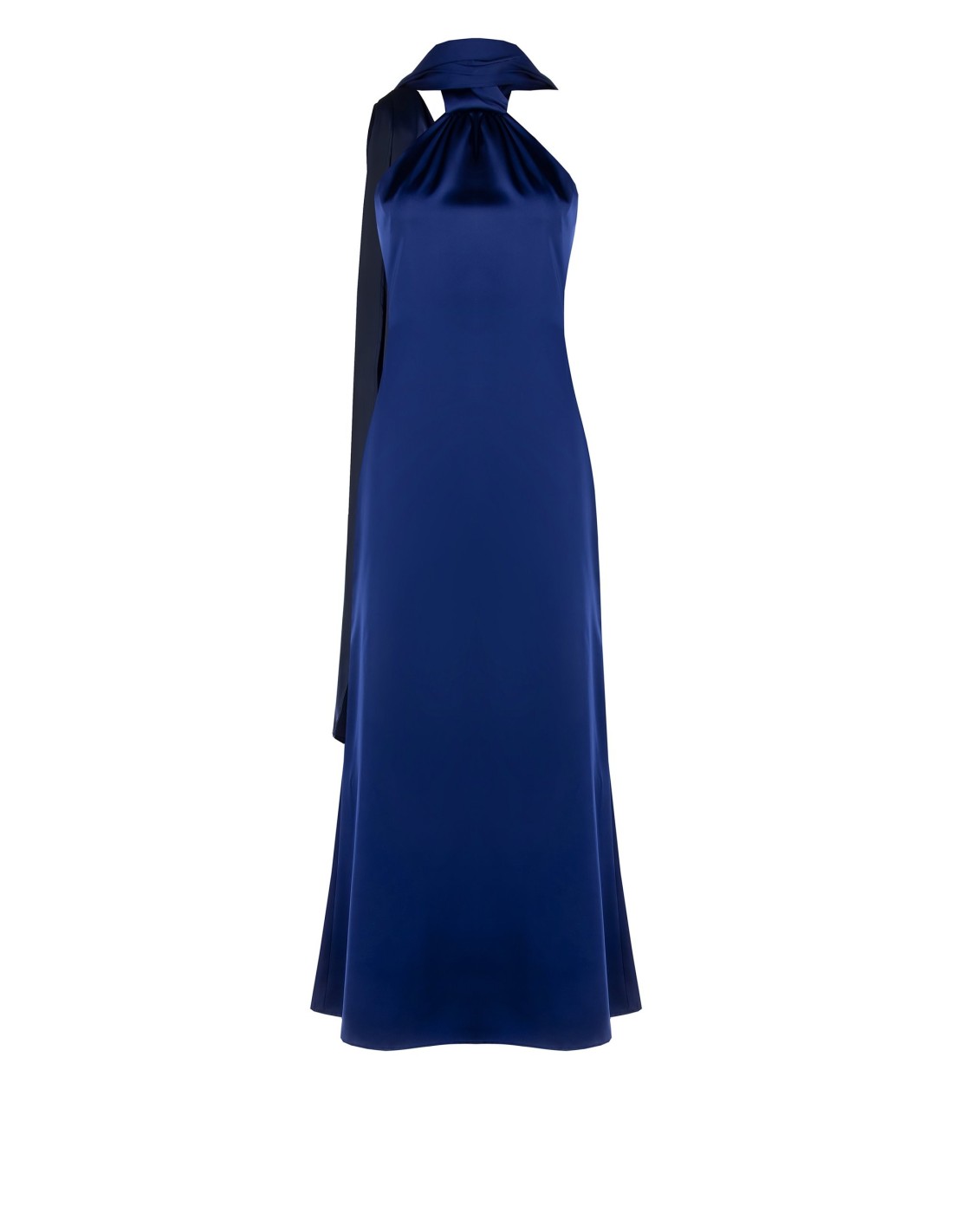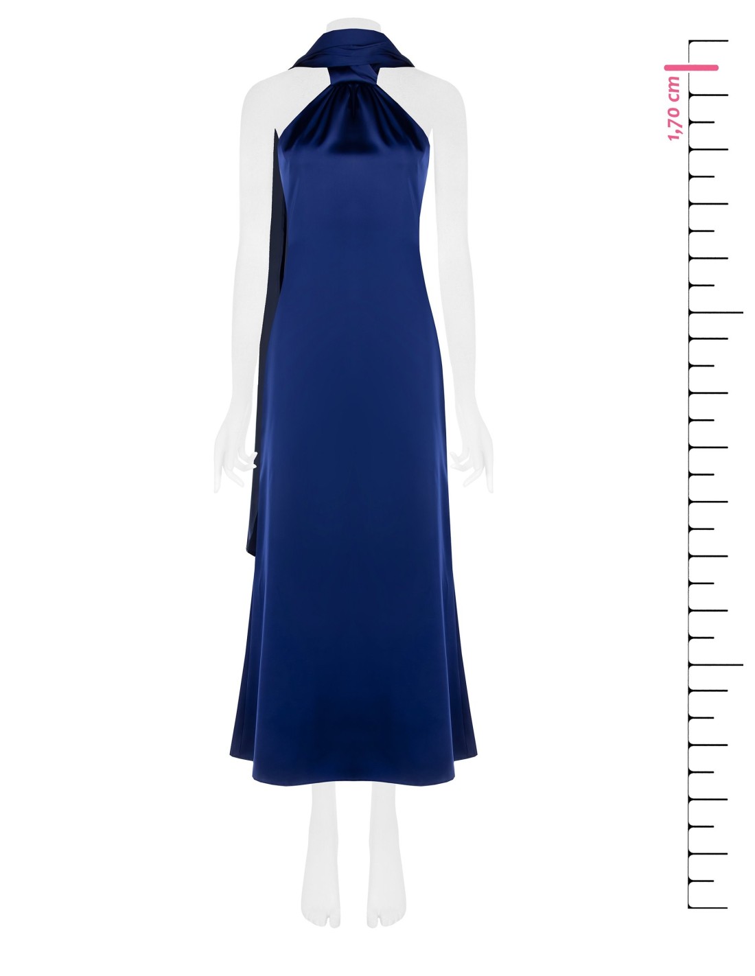 Slip dress midi com um corte fino que adelgaça a silhueta. Cetim fluido e brilhante, agradável para a pele. Decote com laço com maxi lenço de lado e franzido no decote para um movimento elegante; fecho de correr discreto de lado. Perfeito para cerimónias, festas e jantares especiais. Rinascimento.