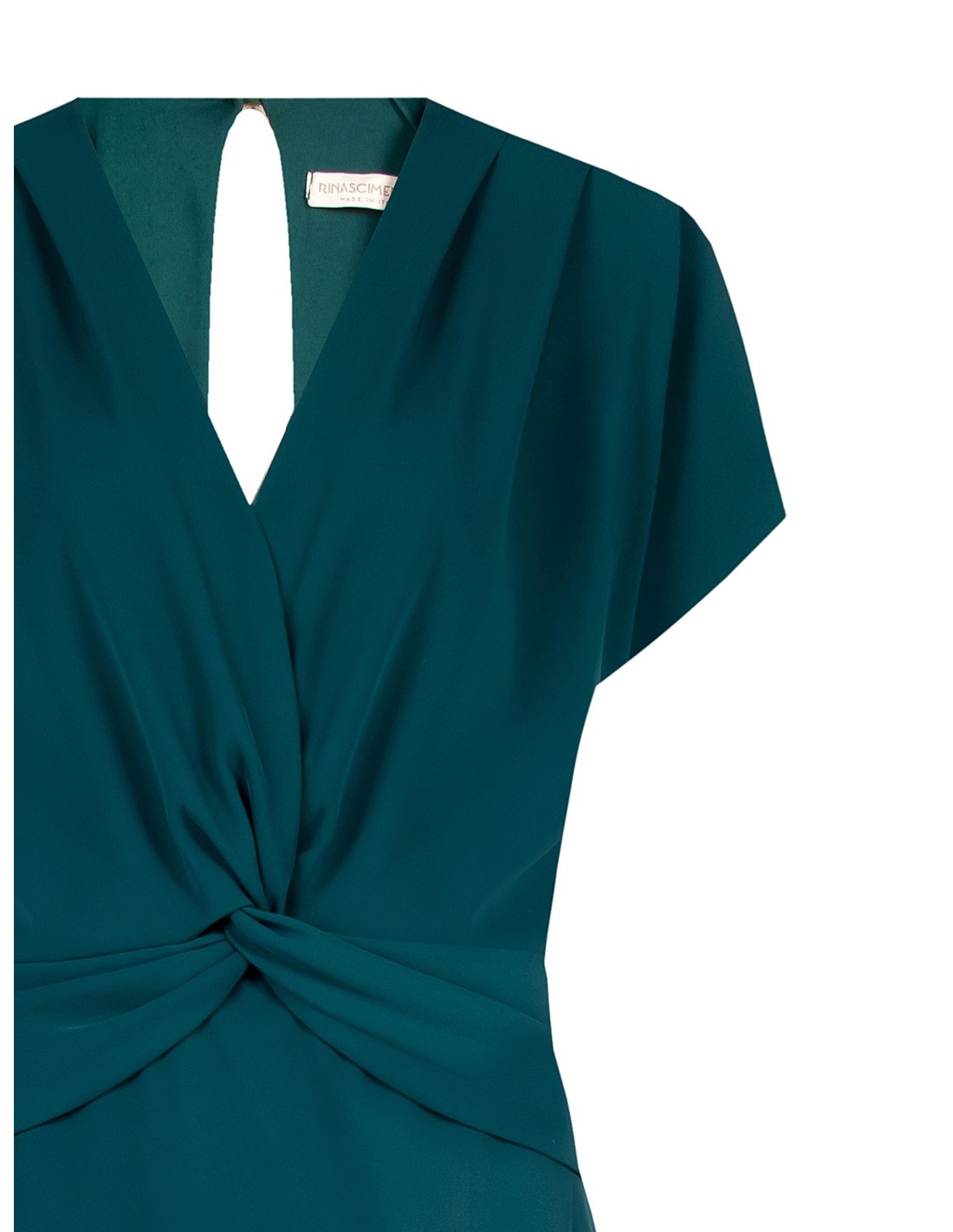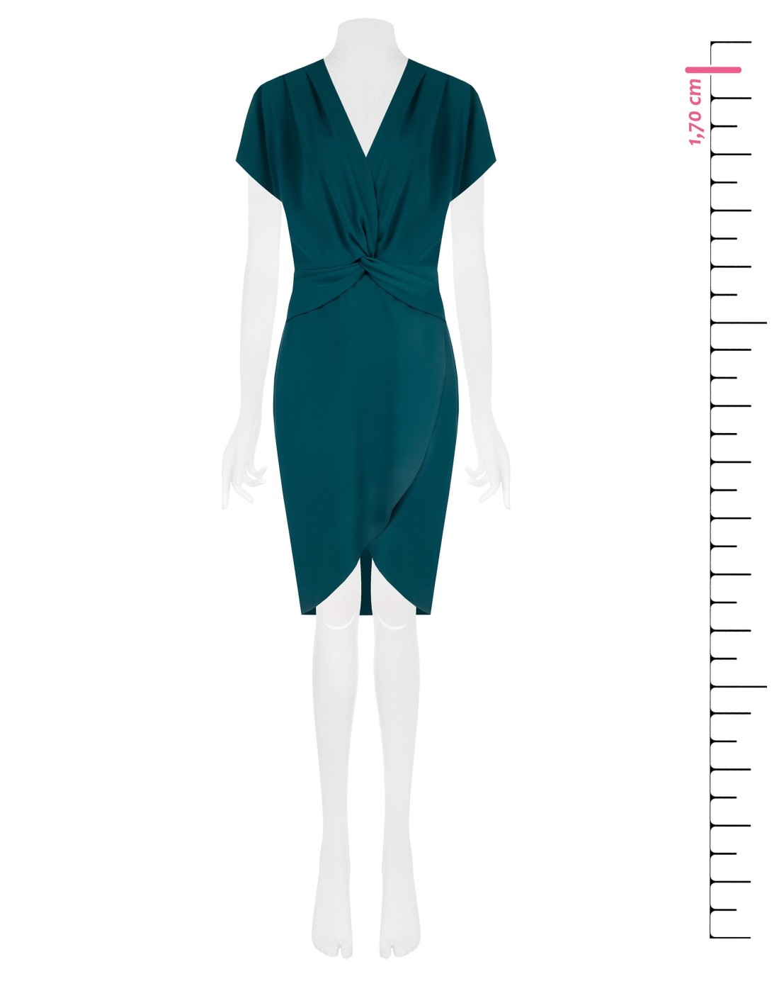 Uma silhueta envolvente com um corte justo mas confortável. Tecido fluido e ligeiramente elástico que acaricia a forma. Nó na cintura que esculpe, decote cruzado com abertura nas costas e parte inferior com painel sobreposto. Perfeito para o escritório que se transforma em aperitivo ou para cerimónias nocturnas. Rinascimento.