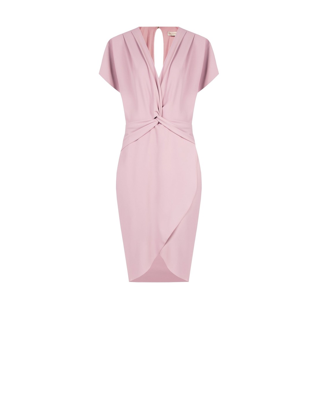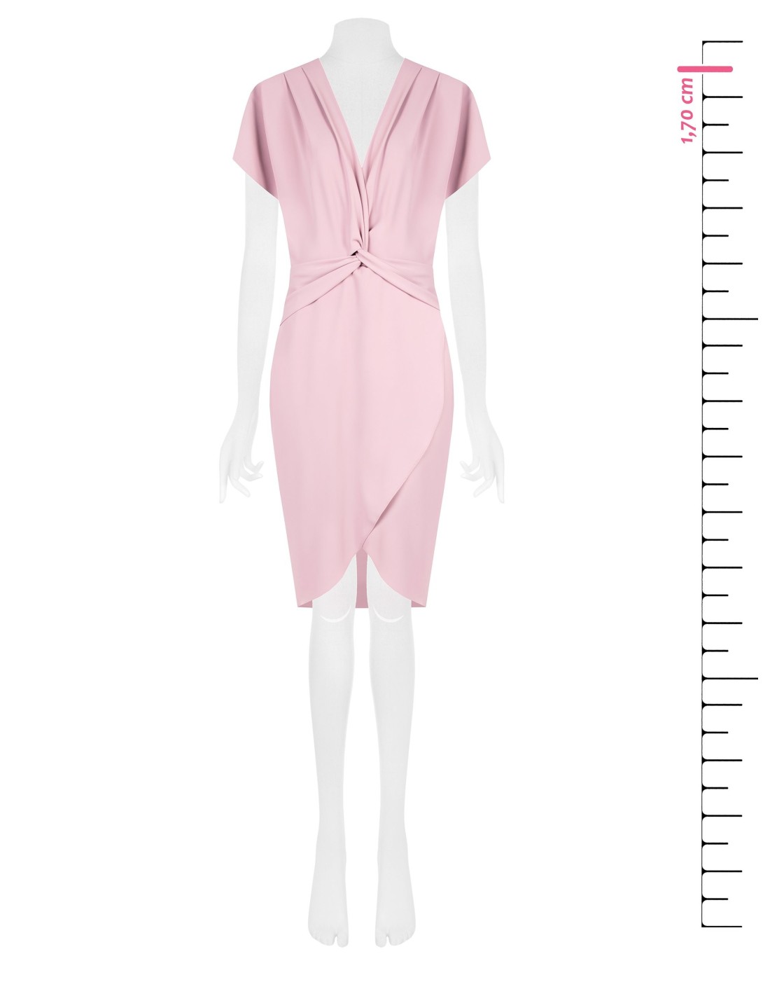 Uma silhueta envolvente com um corte justo mas confortável. Tecido fluido e ligeiramente elástico que acaricia a forma. Nó na cintura que esculpe, decote cruzado com abertura nas costas e parte inferior com painel sobreposto. Perfeito para o escritório que se transforma em aperitivo ou para cerimónias nocturnas. Rinascimento.