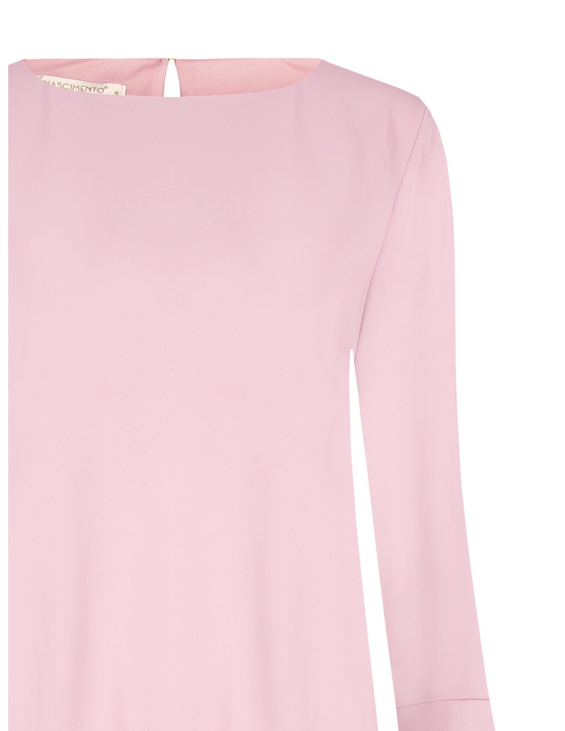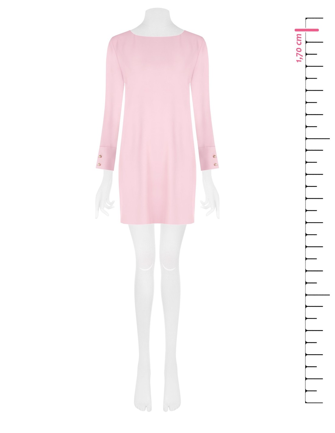 Rinascimento assina uma mini de corte direito que roça a silhueta sem apertar. Tecido fluido com toque macio para conforto todo o dia. Decote barco, abertura traseira em gota e punhos com botões joia. Perfeita com blazer para o escritório, com botas para o aperitivo.