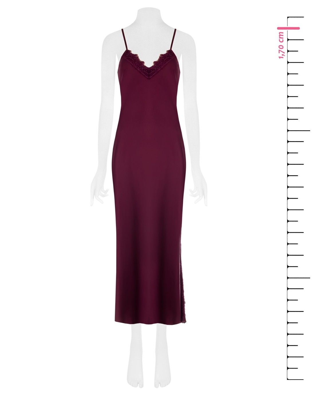 Vestido slip midi com corte fluido que alonga a silhueta. Cetim fluido com aplicações em renda e alças ajustáveis para um ajuste sob medida. Abertura lateral com acabamento em renda para um andar descontraído. Perfeito para festas e jantares, também se presta a sobreposição com blazer para o escritório. Rinascimento.