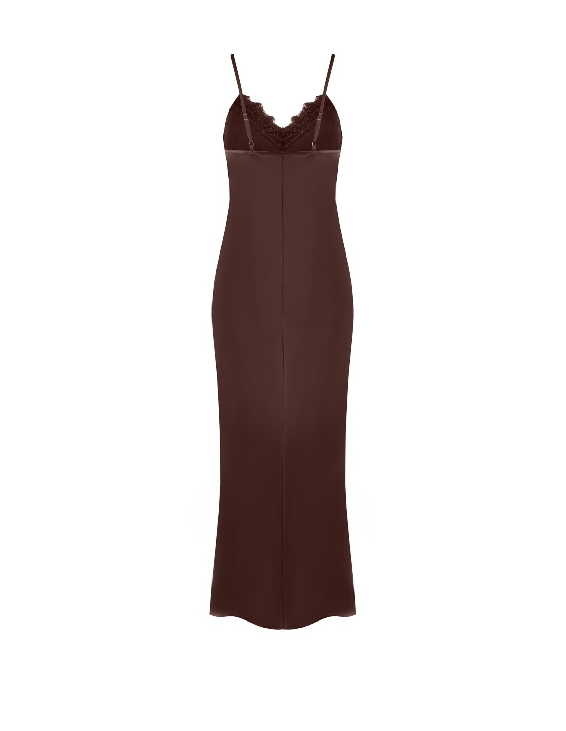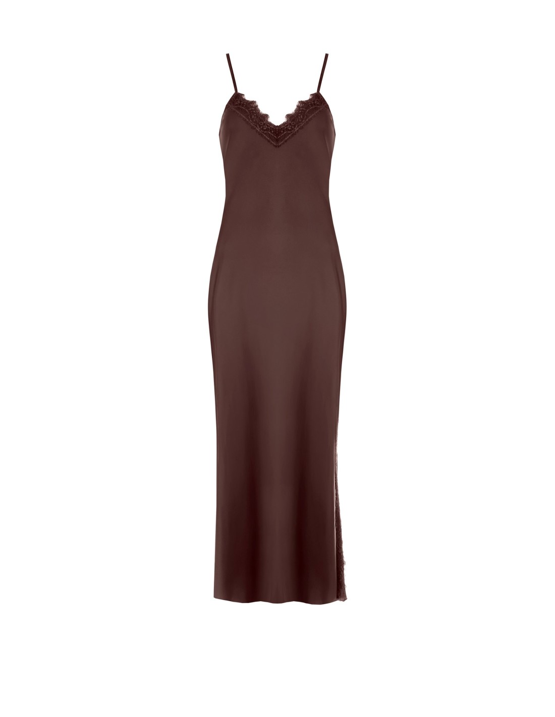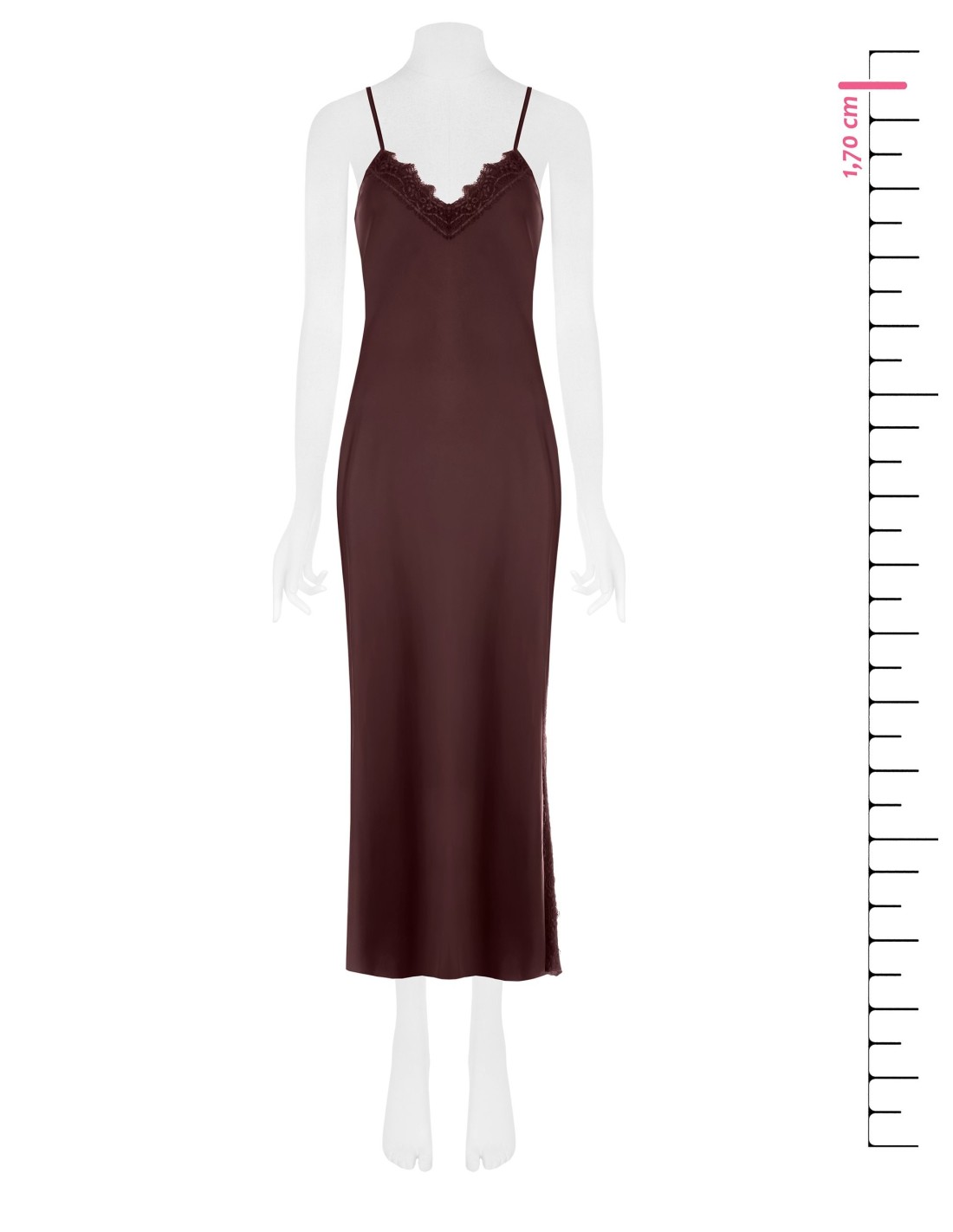 Vestido slip midi com corte fluido que alonga a silhueta. Cetim fluido com aplicações em renda e alças ajustáveis para um ajuste sob medida. Abertura lateral com acabamento em renda para um andar descontraído. Perfeito para festas e jantares, também se presta a sobreposição com blazer para o escritório. Rinascimento.
