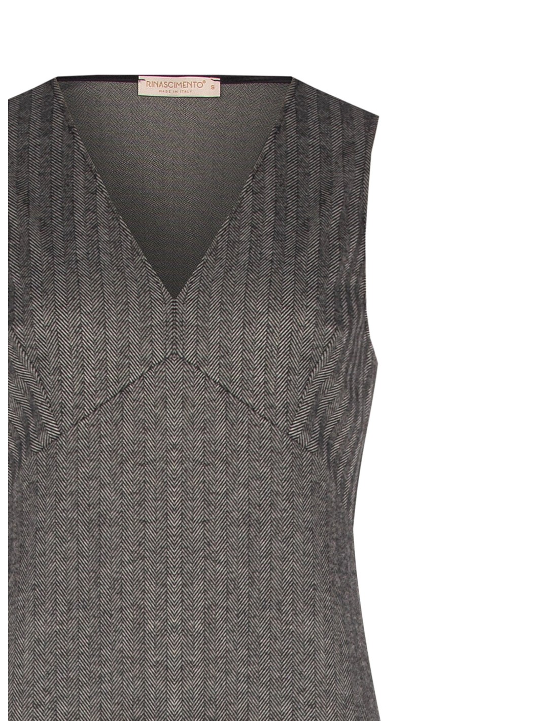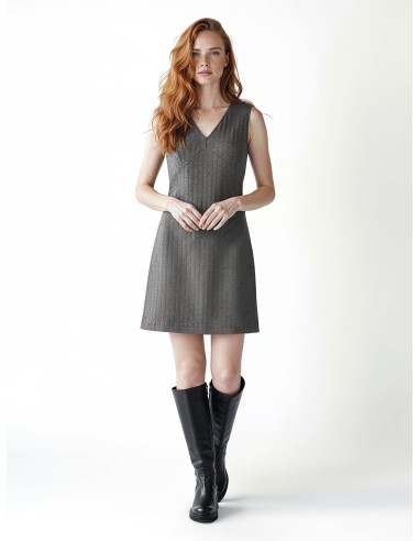 Rinascimento interpreta a feminilidade com uma linha evasê que afina e deixa liberdade de movimento. Tecido jacquard em espinha de peixe, macio e confortável. Decote em V que valoriza o decote e corte sob o peito para um ajuste harmonioso. Perfeito para o escritório com blazer, ideal também para o dia a dia com botas.