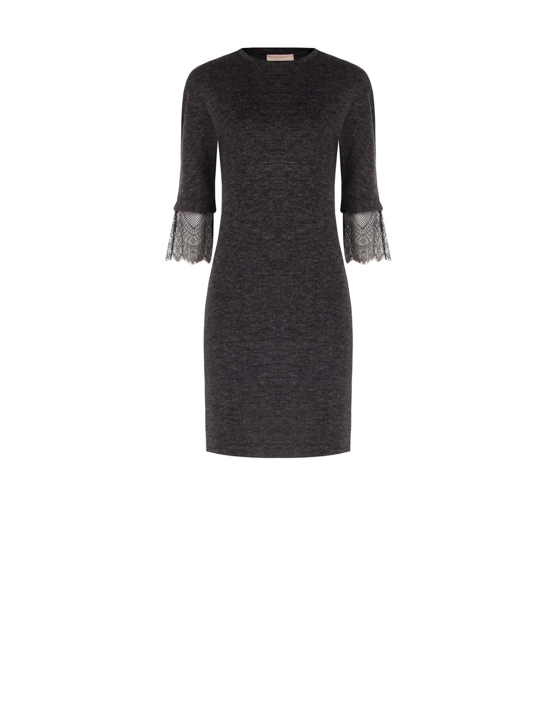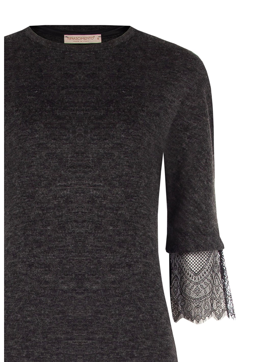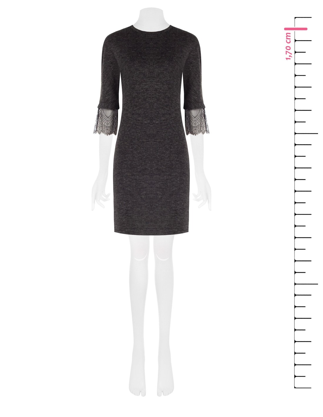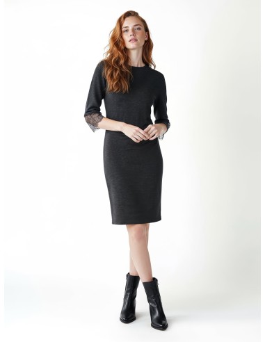 Modelo tubinho, caimento suave que realça a silhueta sem apertar. Malha efeito lã com toque macio e stretch para conforto diário. Mangas três-quartos com punhos em renda e decote redondo clean. Perfeito do escritório ao aperitivo, com blazer ou botins. Rinascimento.