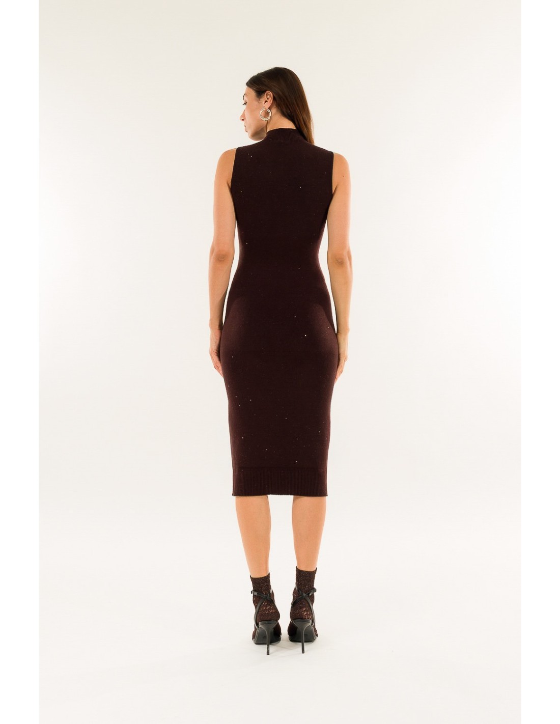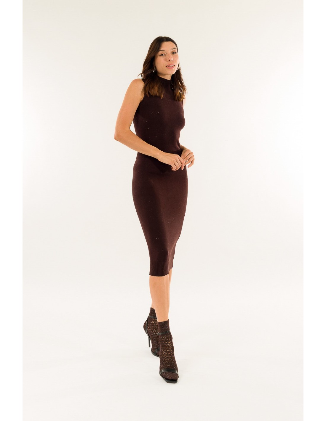 As linhas limpas e o corte midi realçam a silhueta com uma simplicidade refinada. O tecido suave acaricia a silhueta, enquanto o design sem mangas confere uma elegância sofisticada, perfeita para estar impecável em qualquer ocasião.