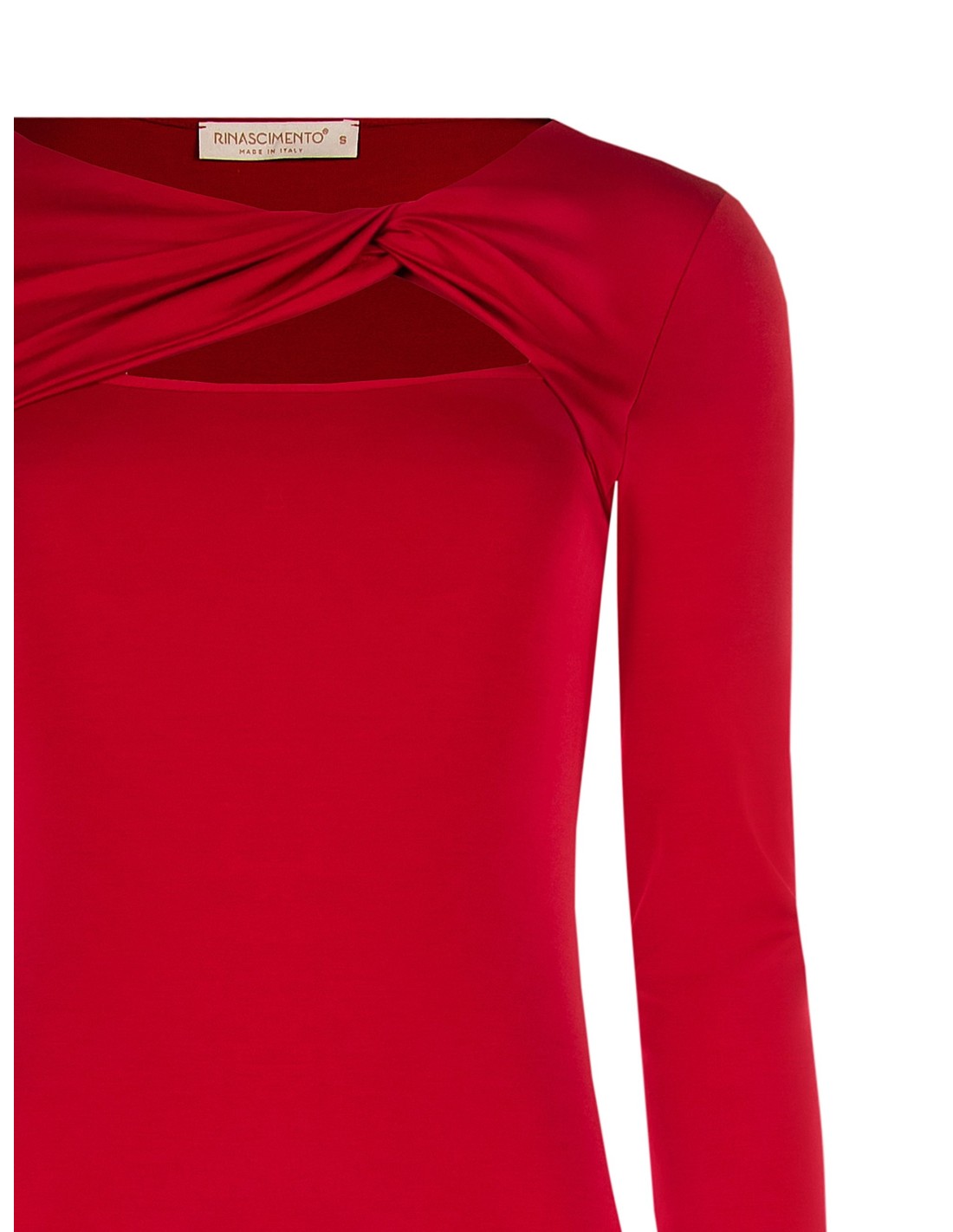 Vestido tubinho com decote anudado e recorte Rinascimento