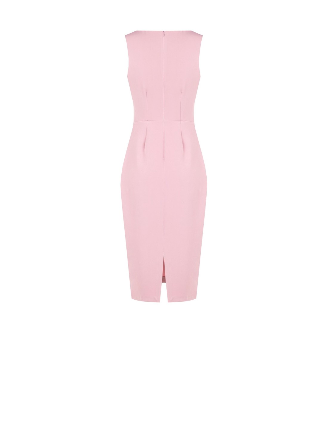 Rinascimento assina um midi de corte justo que esculpe com elegância. Tecido compacto e confortável, valorizado por uma faixa em cetim drapeado que define a cintura e por um delicado ponto de luz central. Decote em gota e fenda posterior para liberdade de movimento. Perfeito para cerimónias, festas e cocktails.