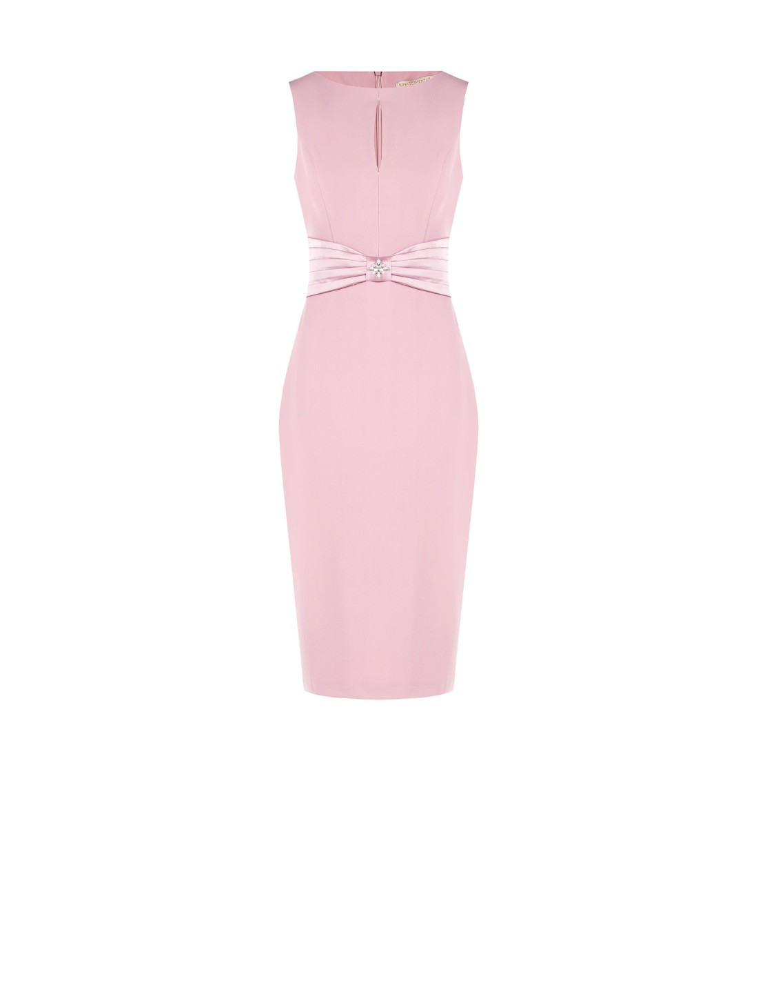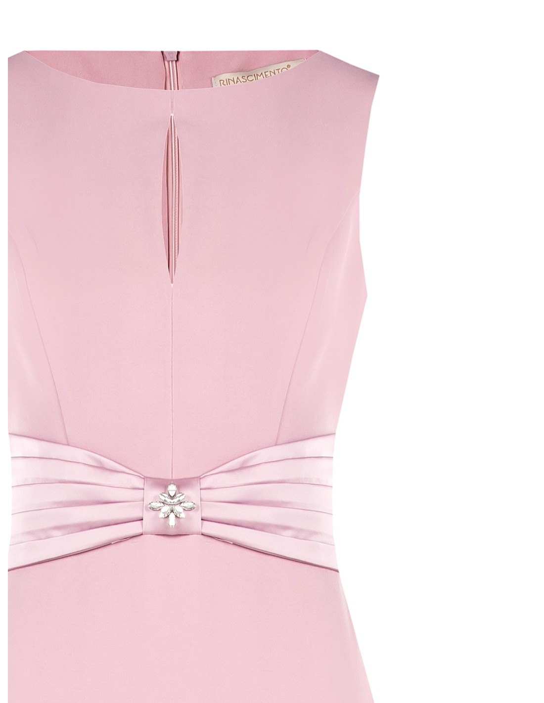 Vestido Tubinho Com Faixa Em Cetim E Detalhe De Joia Rinascimento
